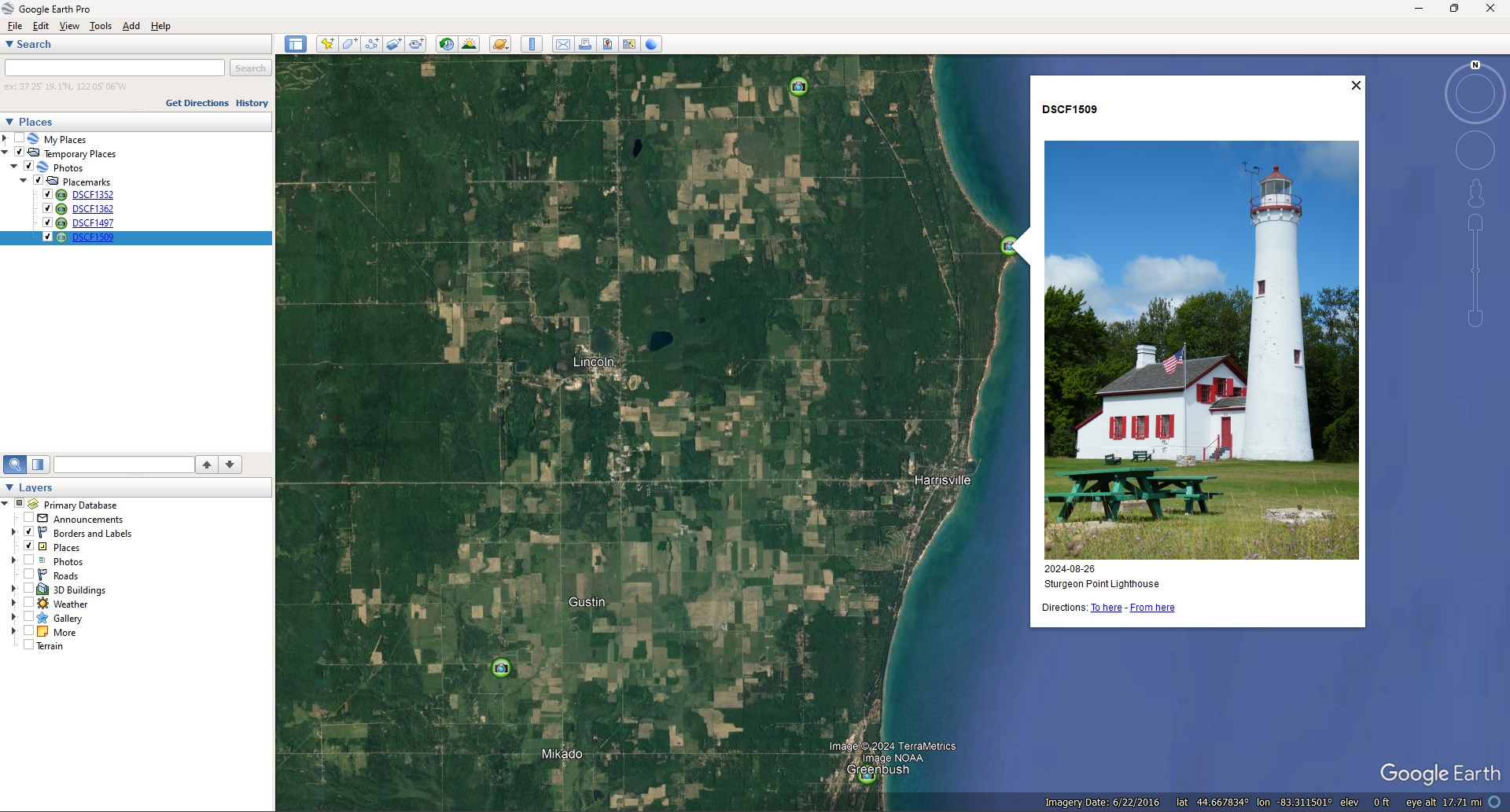 A Windows application to view your photo (or video) locations in Google Earth Pro with a single click. Display file names, dates, and subject descriptions as entered via PixaGEO, File Explorer, or Adobe® Bridge.